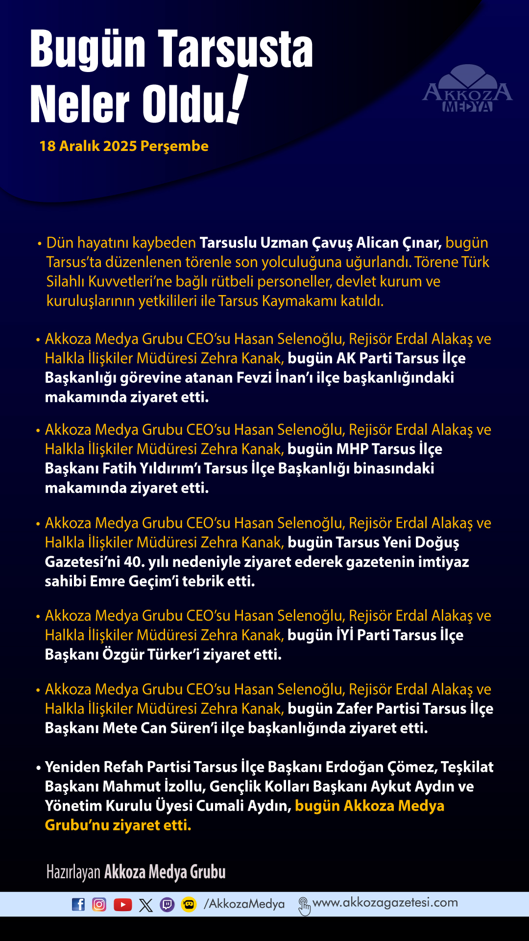 #Tarsus #AkkozaMedya #Bugün #Neler #Oldu #18Aralık2025