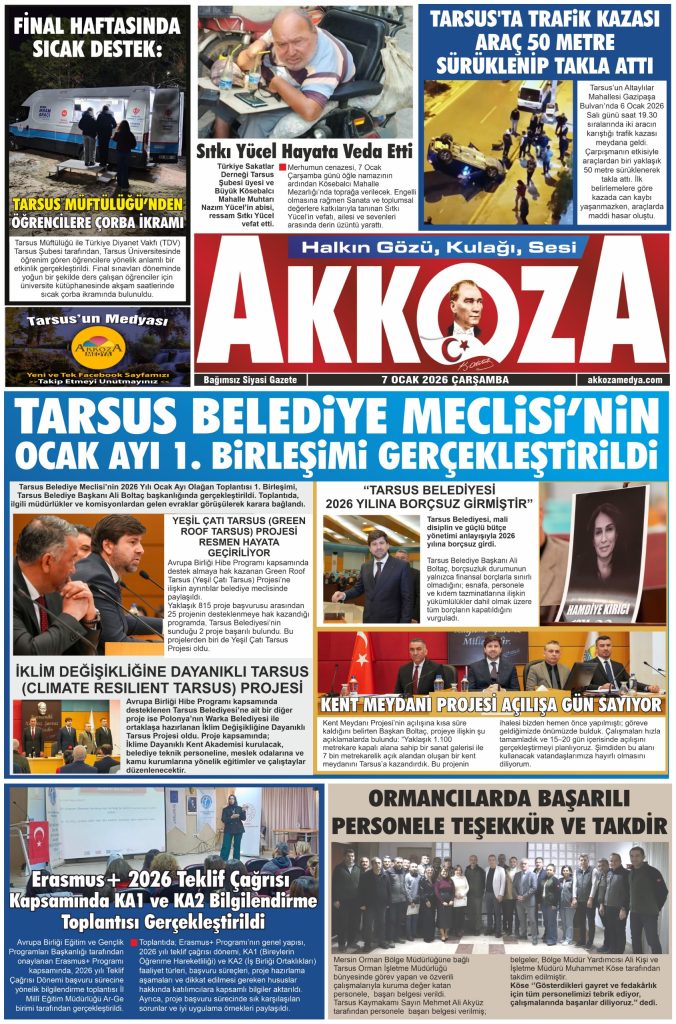 “Tarsus Basını Akkoza Gazetesi 15 Ocak 2026 Perşembe”