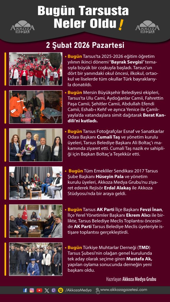 Bugün Tarsus’ta Neler Oldu – 2 Şubat 2026 Pazartesi