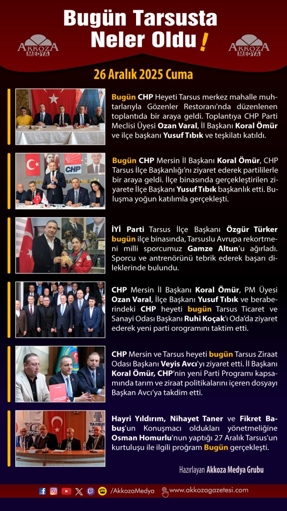 Bugün Tarsus'ta Neler Oldu 26 Aralık 2025 Cuma