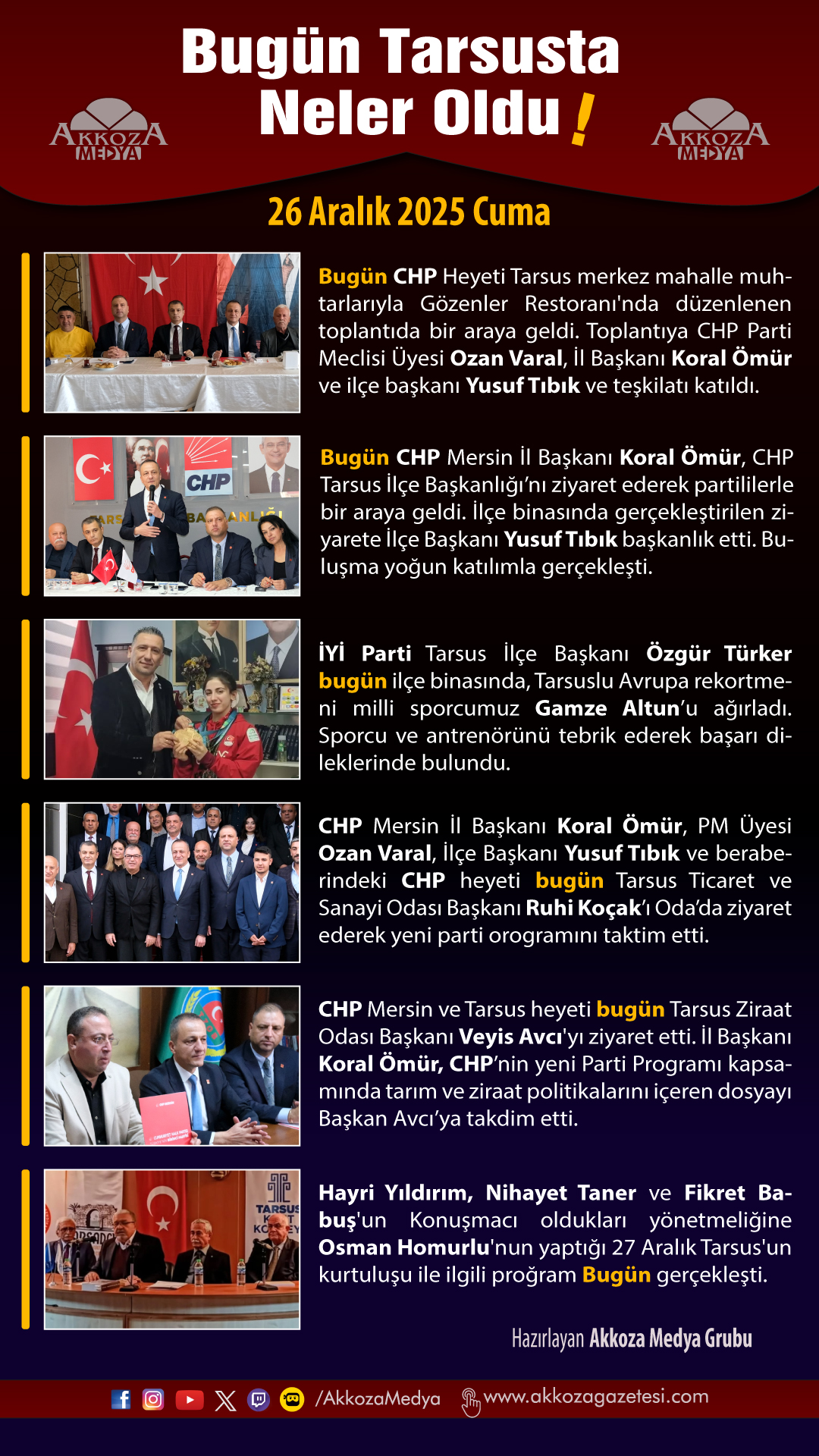 Tarsus Basını Akkoza Gazetesi 27 Aralık 2025 Cumartesi