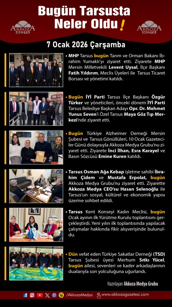 Bugün Tarsus’ta Neler Oldu? 7 Ocak 2026 Çarşamba