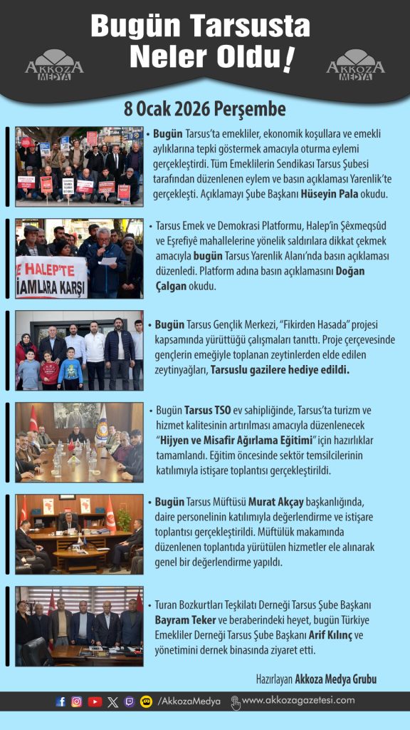 Bugün Tarsus’ta Neler Oldu? 8 Ocak 2026 Perşembe