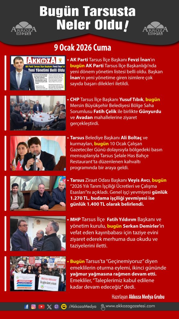 Bugün Tarsus'ta Neler Oldu? 9 Ocak 2026 Cuma