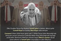 Tarsus Ülkü Ocakları Başkanı İsmail Işılar’ın dedesi, ülkücü şehit Cumali Kaya’nın kardeşi Naci Kaya vefat etmiştir.