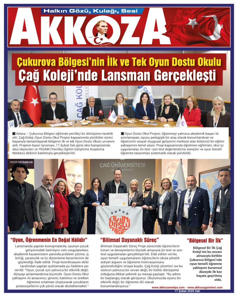 Adana – Çukurova Bölgesi eğitimde yenilikçi bir dönüşüme tanıklık etti. Çağ Koleji, Oyun Dostu Okul Projesi kapsamında yürütülen süreci başarıyla tamamlayarak bölgenin ilk ve tek Oyun Dostu Okulu unvanını aldı. Projenin basın lansmanı, 17 Şubat Salı günü okul kampüsünde, okul idarecileri ve YEGAM (Yenilikçi Eğitim Geliştirme Araştırma Merkezi) ekibinin katılımıyla gerçekleştirildi.