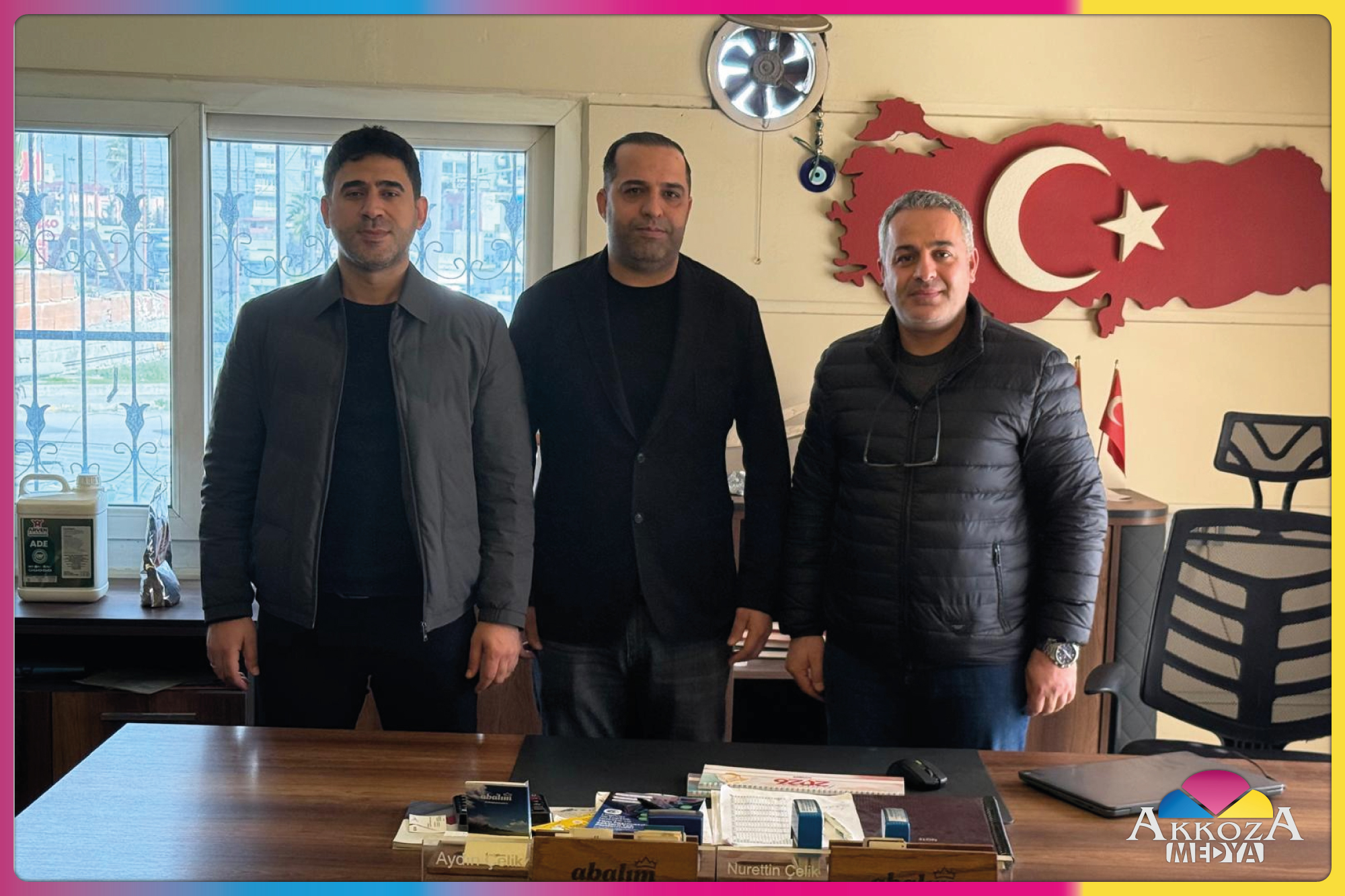 Akkoza Medya CEO’muz Hasan Selenoğlu, Çelikler Yem’i ziyaret ederek önemli temaslarda bulundu. Ziyaret kapsamında, Ak Parti Akdeniz İlçe Başkan Yardımcısı Avukat Abdulkadir Çetin ve Ak Parti Akdeniz İlçe Başkan Yardımcısı ve Çelikler Yem sahibi Aydın Çelik ile bir araya gelindi.