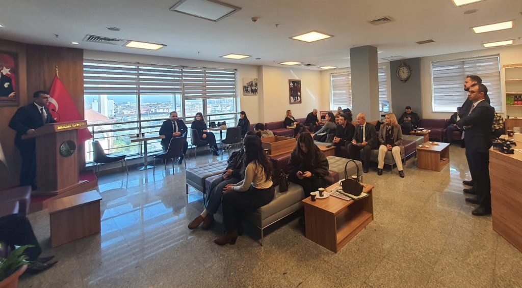 Mersin Barosu Başkanı Av. Gazi Özdemir ve yönetim kurulu üyeleri, Tarsus Baro Odası’nı ziyaret ederek Tarsus’ta görev yapan avukatlarla bir araya geldi.