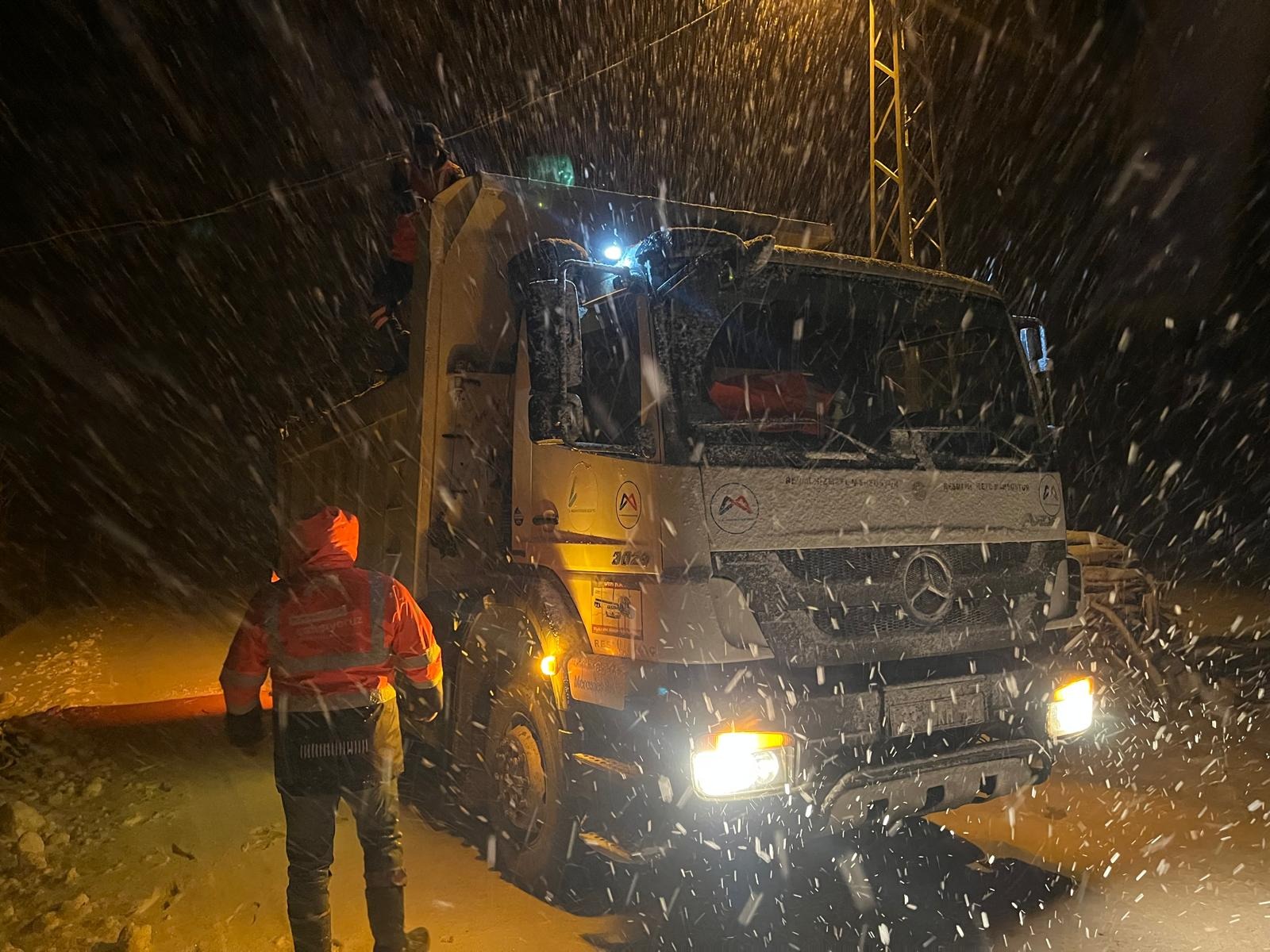 MERSİN BÜYÜKŞEHİR EKİPLERİNDEN "KAR"'LA MÜCADELEDE GECE MESAİSİ