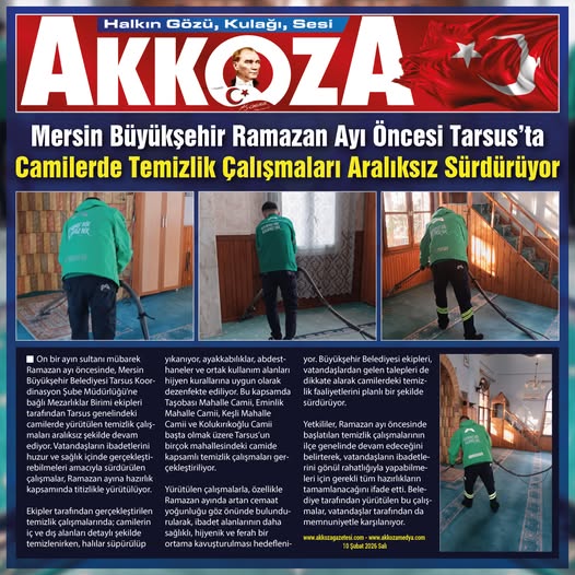 Ekipler tarafından gerçekleştirilen temizlik çalışmalarında; camilerin iç ve dış alanları detaylı şekilde temizlenirken, halılar süpürülüp yıkanıyor, ayakkabılıklar, abdesthaneler ve ortak kullanım alanları hijyen kurallarına uygun olarak dezenfekte ediliyor. Bu kapsamda Taşobası Mahalle Camii, Eminlik Mahalle Camii, Keşli Mahalle Camii ve Kolukırıkoğlu Camii başta olmak üzere Tarsus’un birçok mahallesindeki camide kapsamlı temizlik çalışmaları gerçekleştiriliyor.