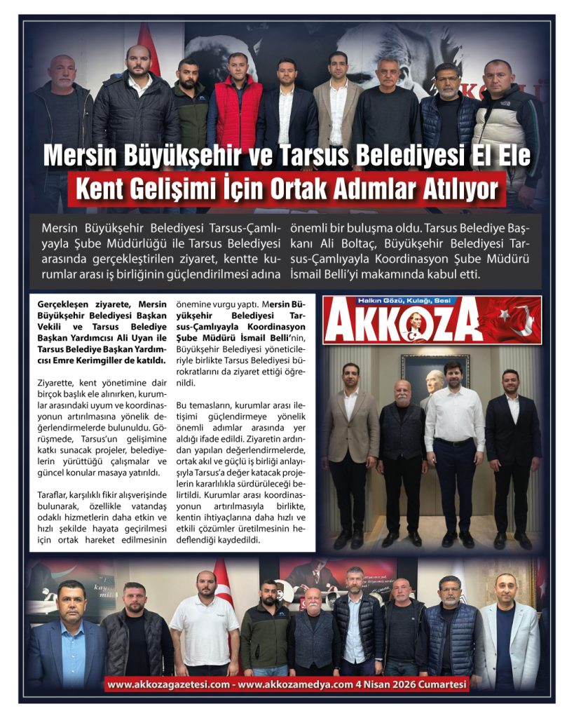 Ziyaretin ardından yapılan değerlendirmelerde, ortak akıl ve güçlü iş birliği anlayışıyla Tarsus’a değer katacak projelerin kararlılıkla sürdürüleceği belirtildi. Kurumlar arası koordinasyonun artırılmasıyla birlikte, kentin ihtiyaçlarına daha hızlı ve etkili çözümler üretilmesinin hedeflendiği kaydedildi.