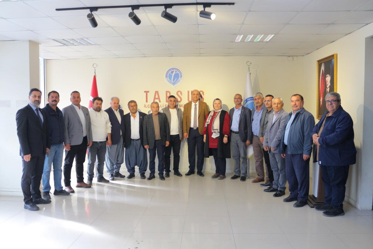Tarsus İlçe Milli Eğitim Müdürü Mustafa Anteplioğlu, Tarsus ve Çamlıyayla Muhtarlar Derneği Başkanı, Sayköy Mahalle Muhtarı Rıza Türkmen ile dernek üyesi muhtarları makamında ağırladı.
