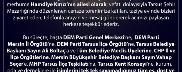 Merhume Hamdiye Kırıcı’nın Ailesinden Teşekkür