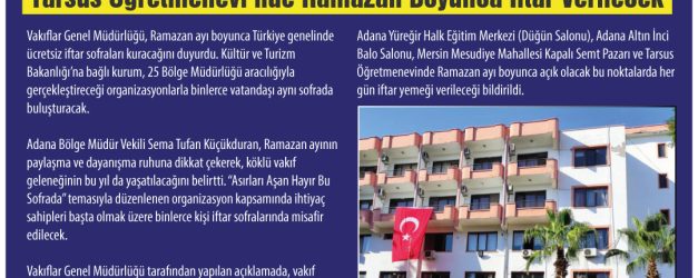 Vakıflar Adana Bölge Müdürlüğü İftar Noktalarını Açıkladı: Tarsus Öğretmenevin de Ramazan Boyunca İftar Verilecek