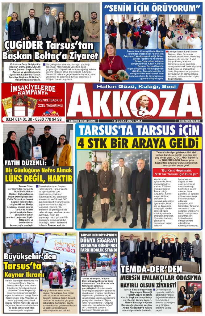 Tarsus Basını Akkoza Gazetesi 10 Şubat 2026 Salı
