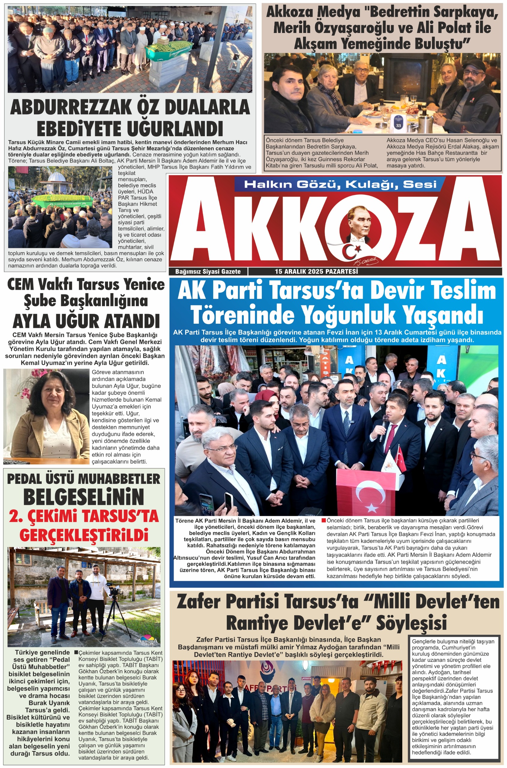 Tarsus Basını - Akkoza Gazetesi "15.12.2025 Pazartesi"