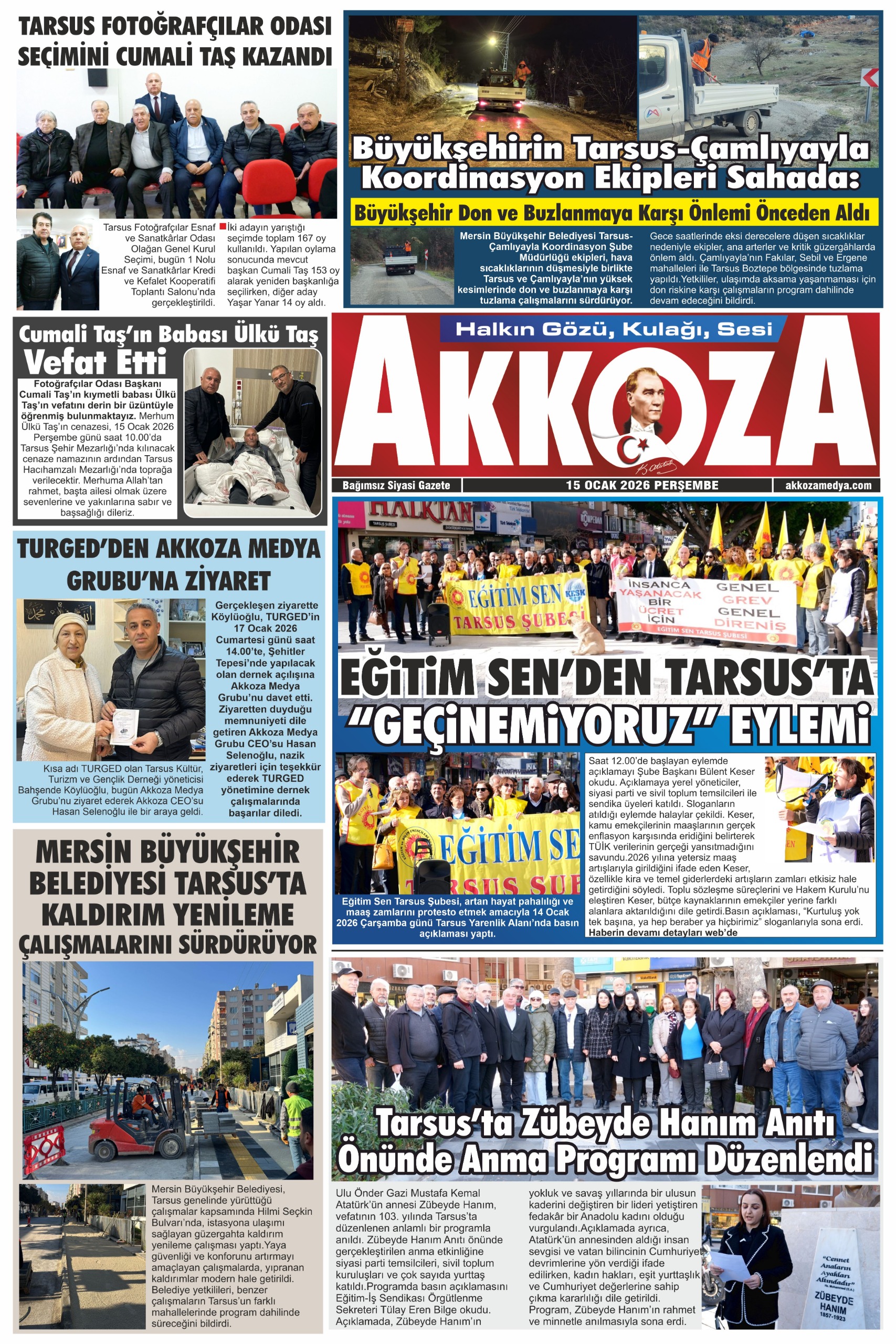“Tarsus Basını Akkoza Gazetesi 15 Ocak 2026 Perşembe”