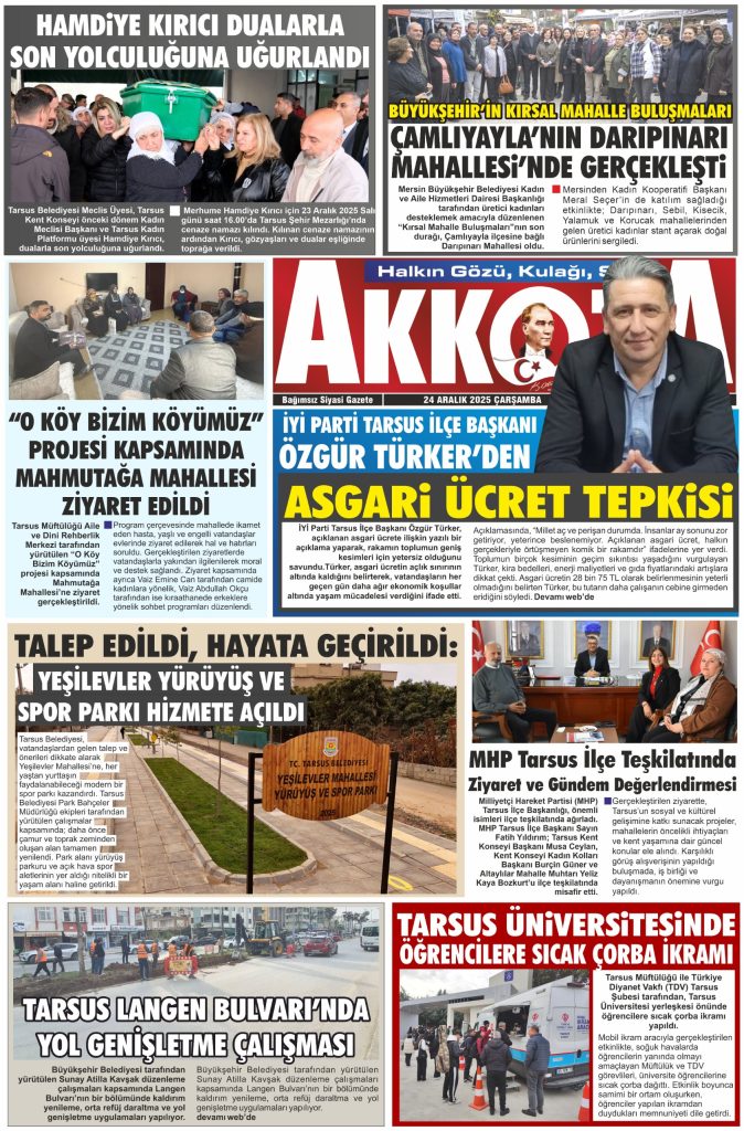 Tarsus Basını Akkoza Gazetesi - 24 Aralık 2025 Çarşamba
