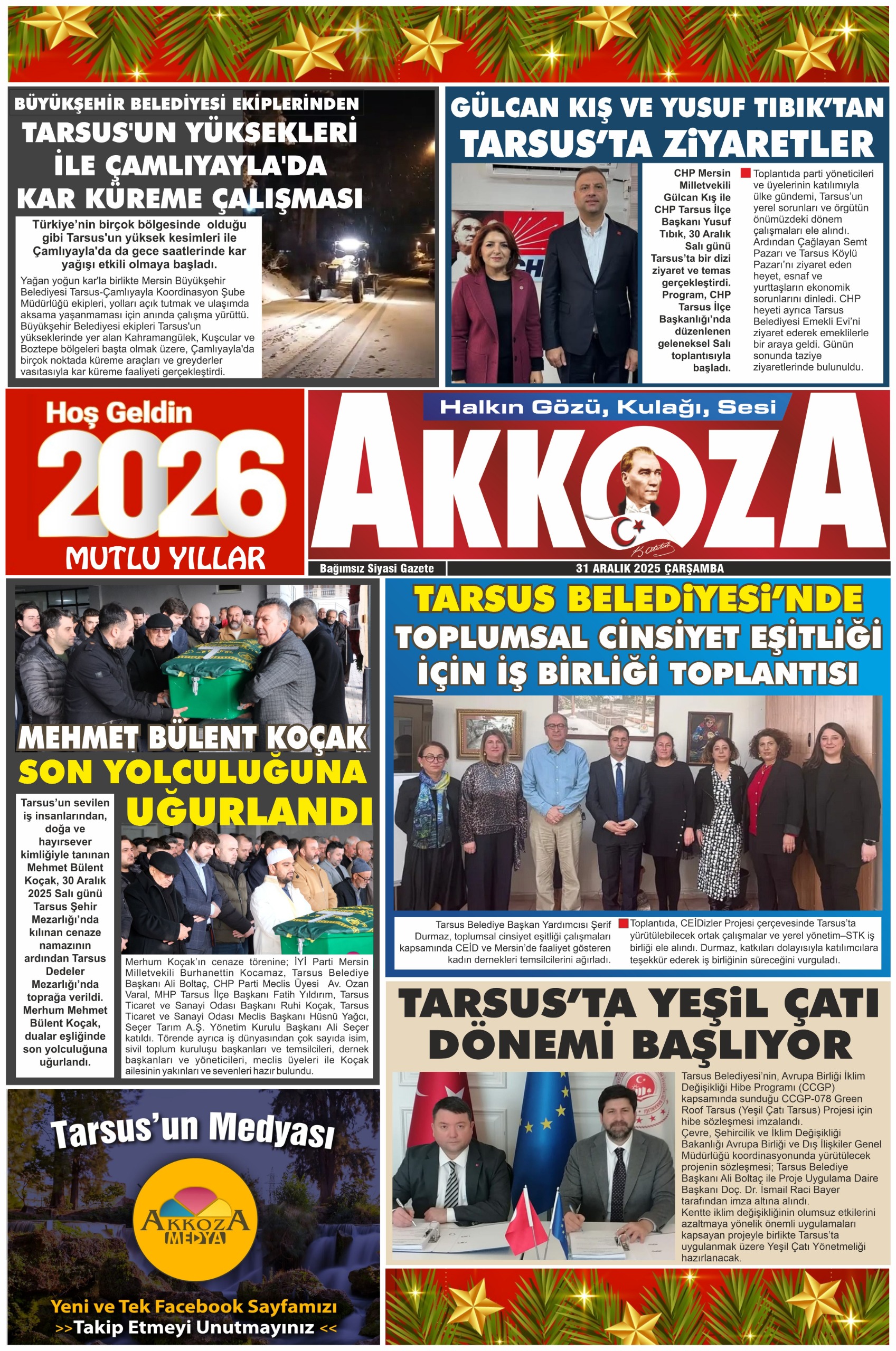 Tarsus Basını Akkoza Gazetesi – 31 Aralık 2025 Çarşamba