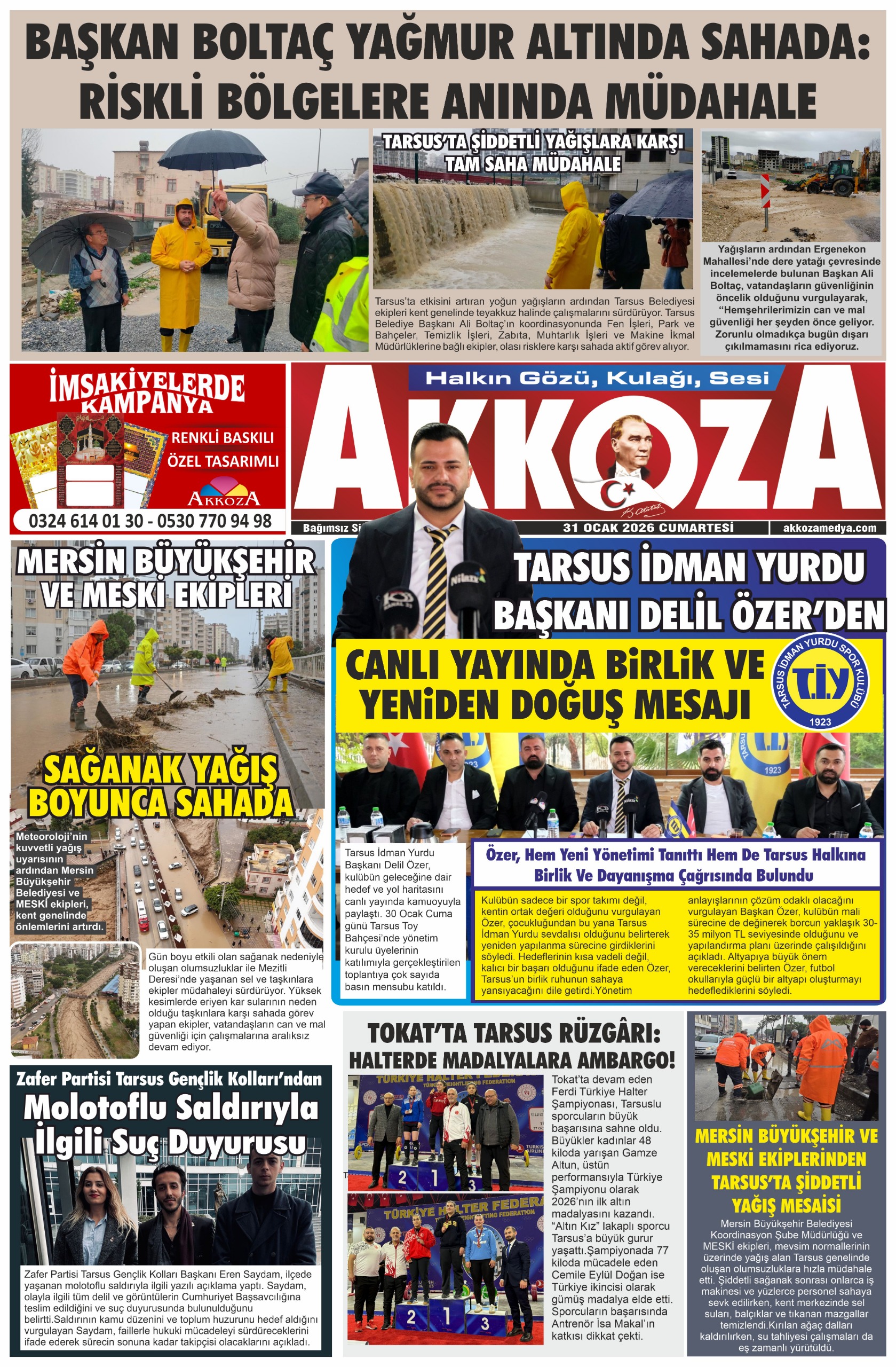 Tarsus Basını – Akkoza Gazetesi (31 Ocak 2026, Cumartesi)