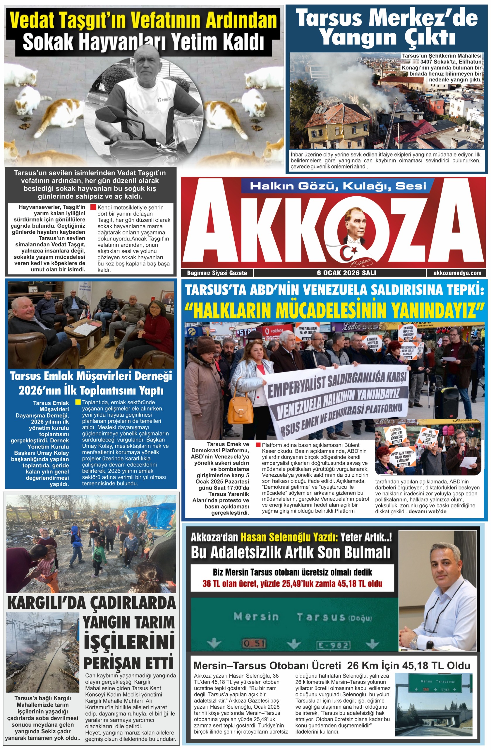 Tarsus Basını Akkoza Gazetesi - 6 Ocak 2026 Salı