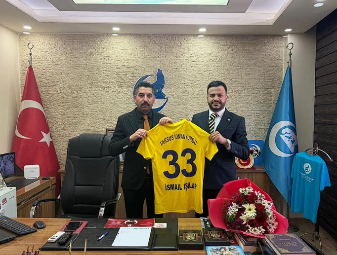 Tarsus İdman Yurdu Spor Kulübü Başkanı Delil Özer ve yönetim kurulu üyeleri, Ülkü Ocakları Tarsus İlçe Başkanı İsmail Işılar’ı ziyaret etti.