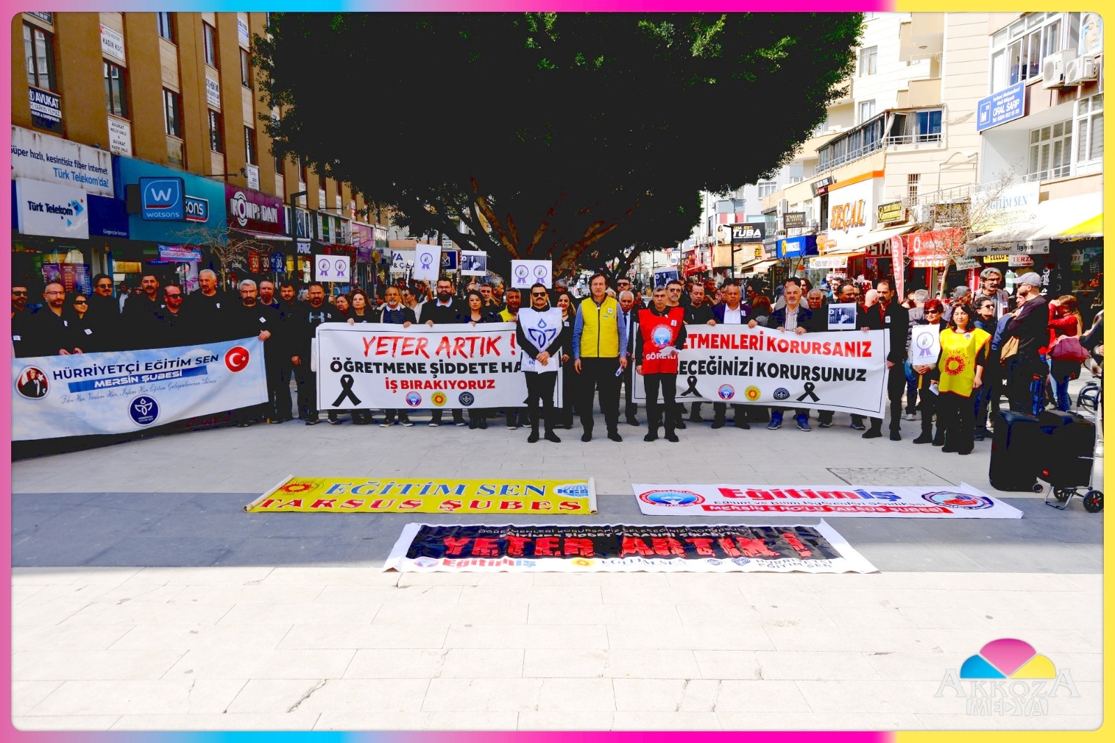 Tarsus Yarenlik Alanı’nda bugün saat 13.00’te Eğitim Sen, Eğitim-İş ve Hürriyetçi Eğitim Sen üyeleri, İstanbul’da öğretmen Fatma Nur Çevik’in okulda öldürülmesini protesto etmek amacıyla iş bırakarak basın açıklaması yaptı. Sendika temsilcileri, yaşanan olayın münferit olmadığını vurgulayarak okullardaki güvenlik zafiyetine dikkat çekti.
