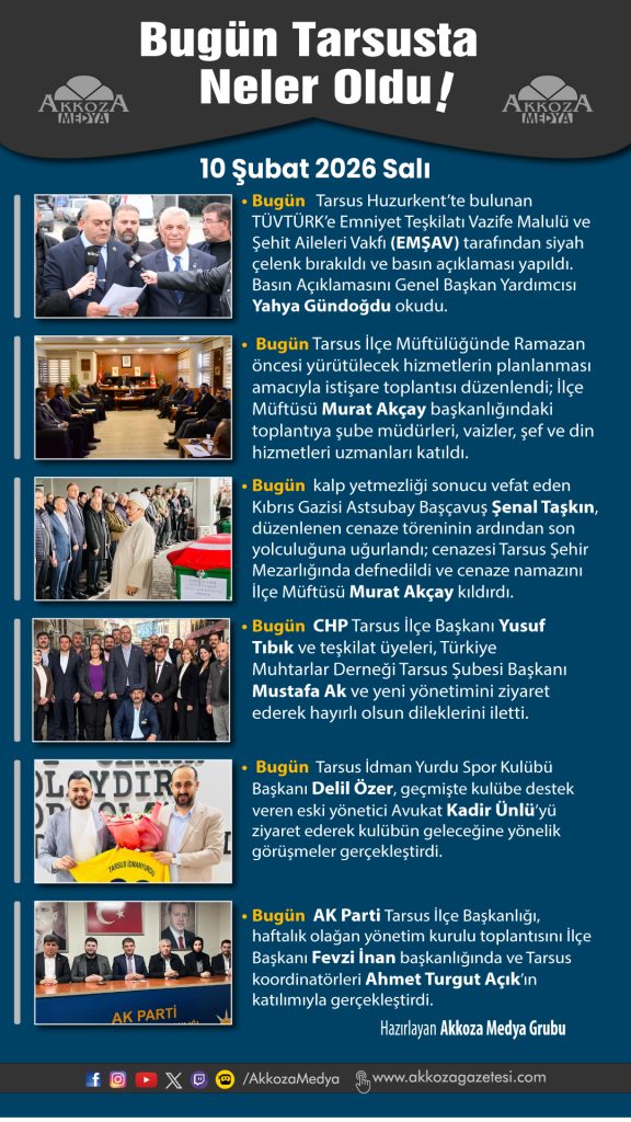 Tarsus’ta Bugün Neler Oldu? 10 Şubat 2026 Salı