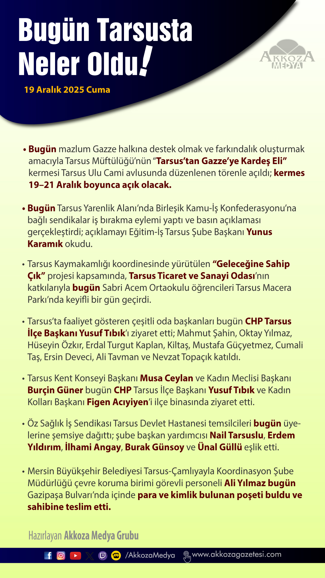Tarsus’ta Bugün Neler Oldu - 19 Aralık 2025 Cuma
