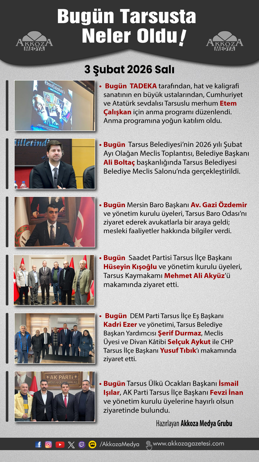 Tarsus’ta Bugün Neler Oldu? 3 Şubat 2026 Salı
