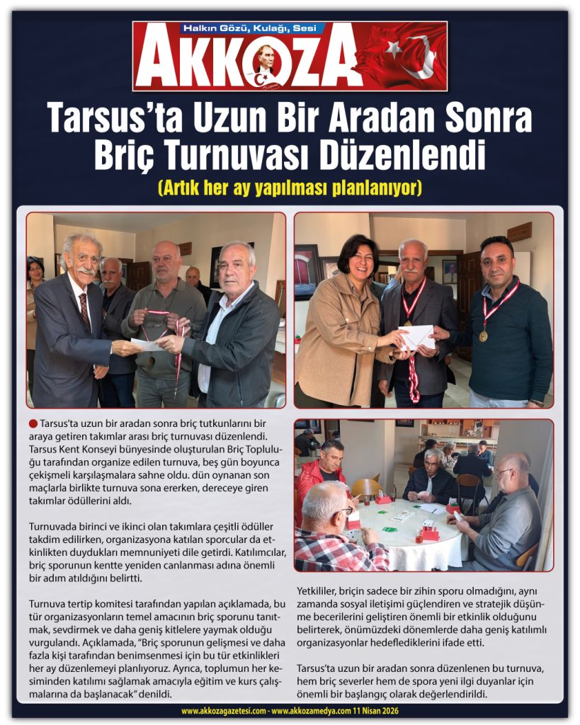 Tarsus’ta uzun bir aradan sonra düzenlenen bu turnuva, hem briç severler hem de spora yeni ilgi duyanlar için önemli bir başlangıç olarak değerlendirildi.