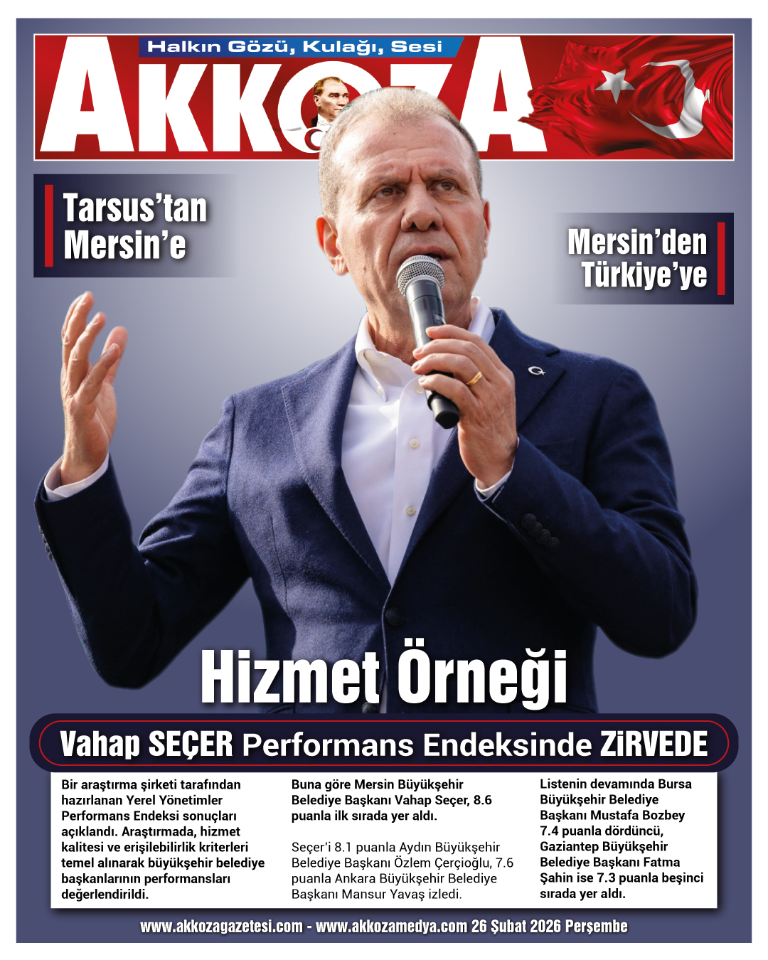 Tarsus’tan Mersin’e, Mersin’den Türkiye’ye örnek hizmet "Vahap Seçer Performans Endeksinde Zirvede"