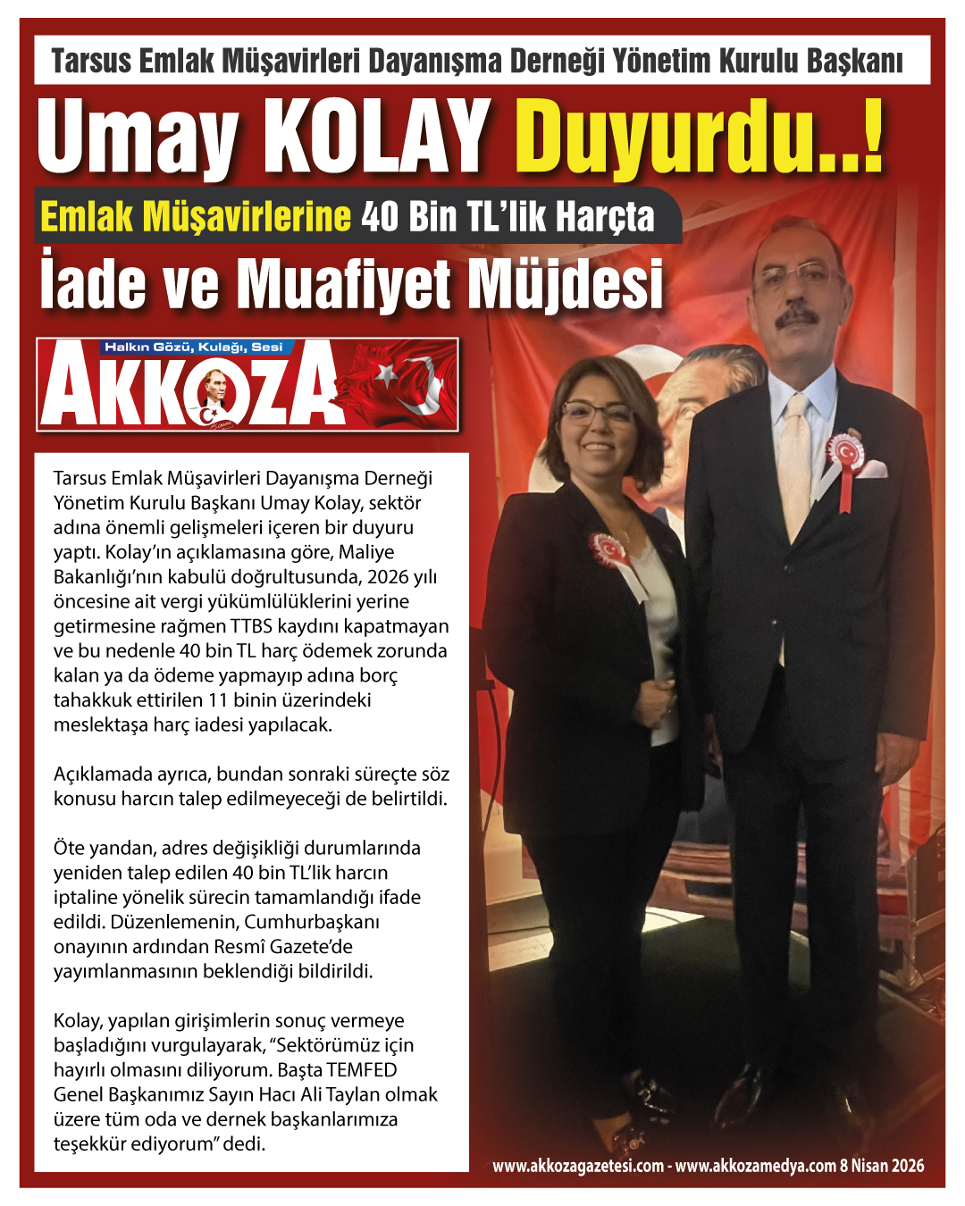 Umay Kolay Duyurdu Emlak Müşavirlerine 40 Bin TL’lik Harçta İade ve Muafiyet Müjdesi