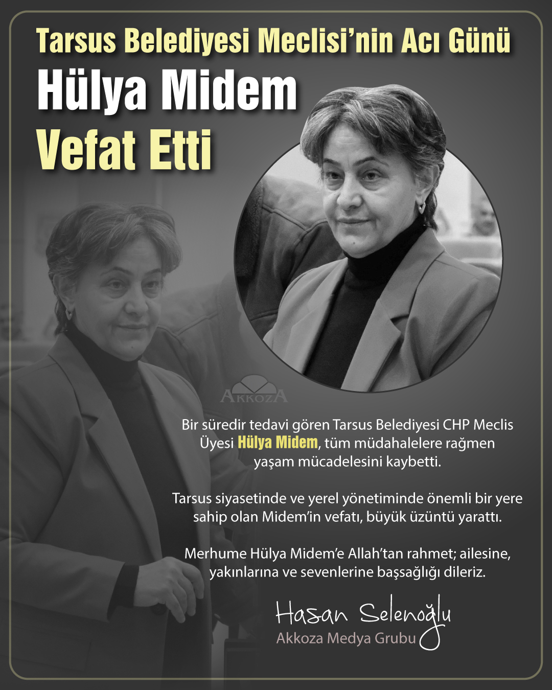 Bir süredir tedavi gören Tarsus Belediyesi CHP Meclis Üyesi Hülya Midem, tüm müdahalelere rağmen yaşam mücadelesini kaybetti.