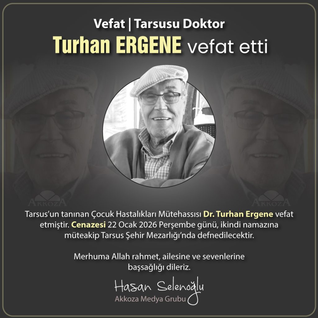 Tarsus’un tanınan Çocuk Hastalıkları Mütehassısı Dr. Turhan Ergene vefat etmiştir.